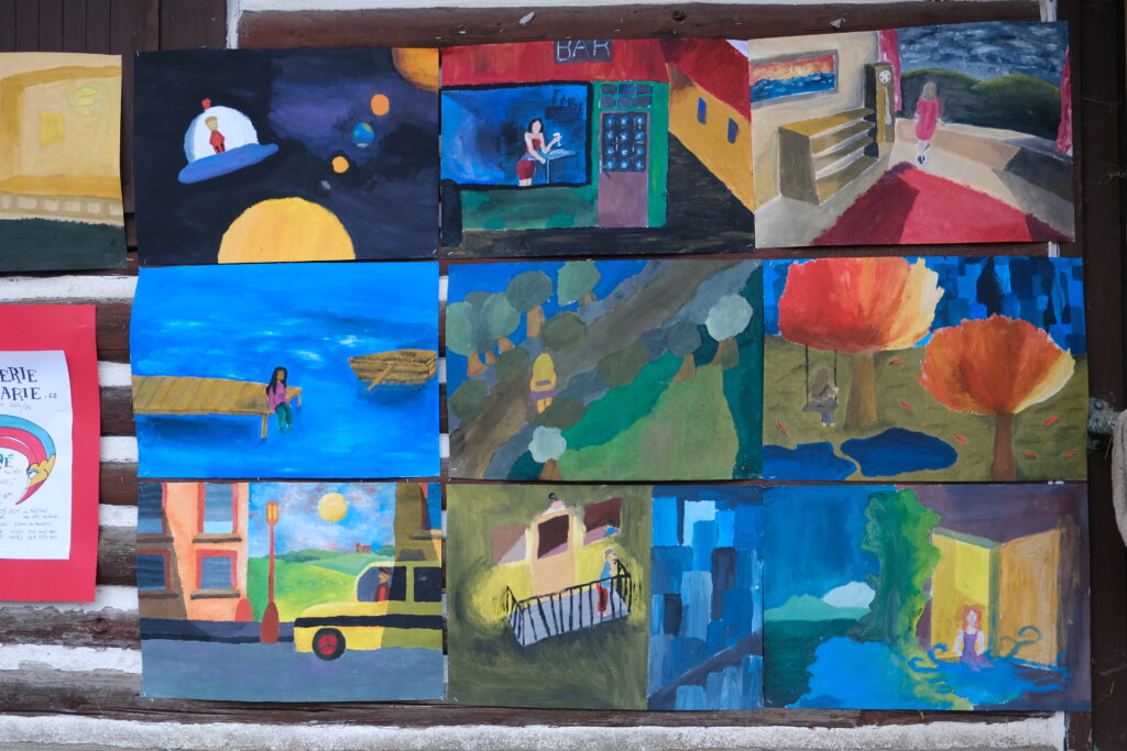 Děti malují obrazy A. Slavíčka, H. Rousseaua a dalších autorů. Zároveň se snaží v podobném stylu namalovat vlastní díla.